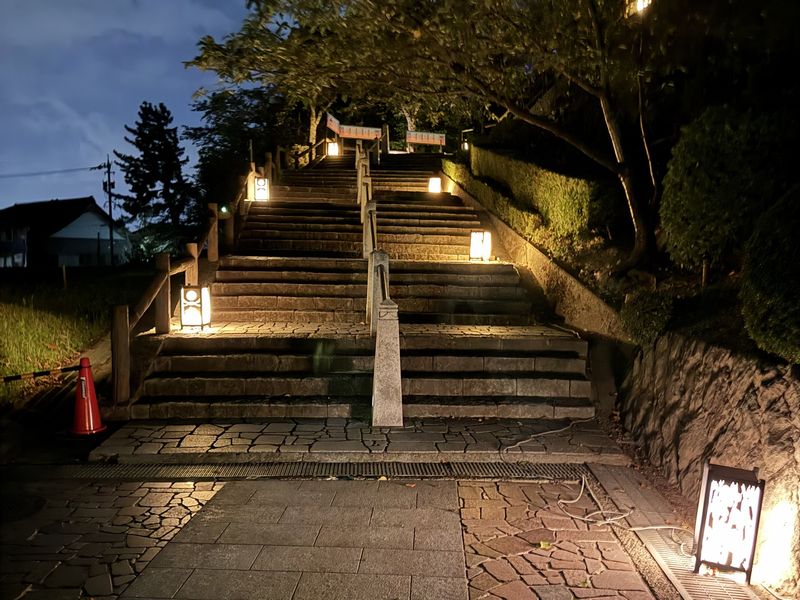 夜は足元が悪いので気を付けて。蚊がとんでいたので防虫スプレーもあったらよいかも。夜のお城は来ることがなかったので貴重な体験でした。