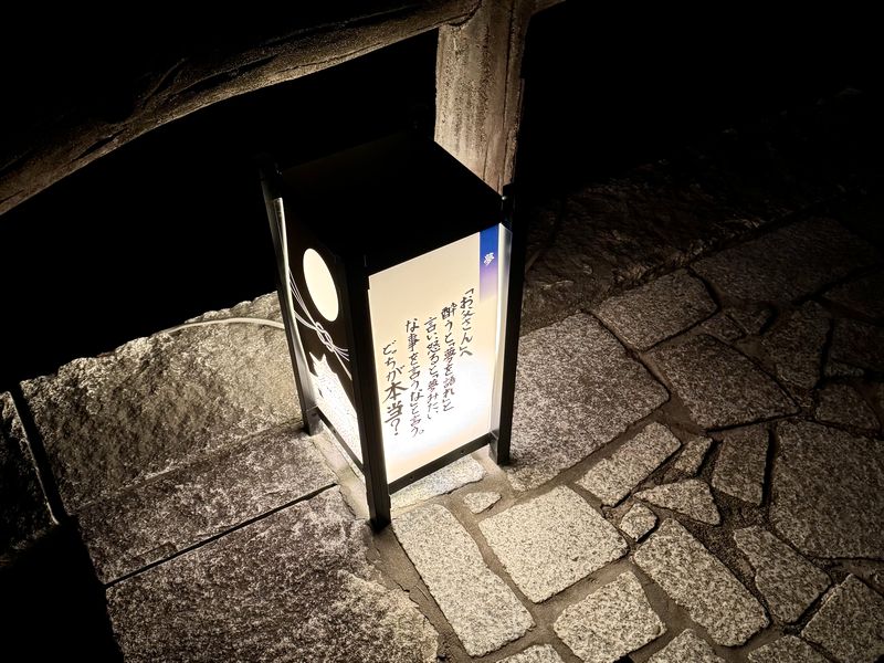 行灯の文を見ながら登っていくと、一つの行灯に目が留まる。この子、まだ純粋なんだろうな。お父さんも私も大人は理想と現実のギャップや矛盾の中に生きているから、どっちのお父さんも本当なんだよと返信したくなった(笑)